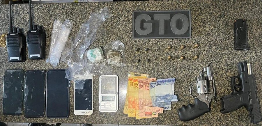 Às 16h, no Alto da Cerâmica, as guarnições interceptaram quatro suspeitos que tentaram fugir ao perceberem a aproximação de uma viatura em patrulhamento. Na ação, foram apreendidos: