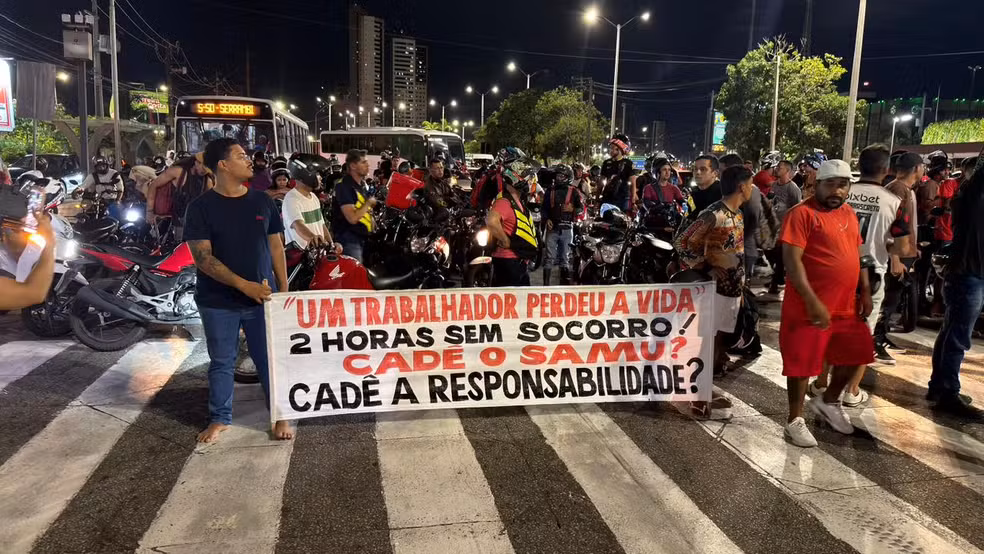 Motoboys protestaram na noite desta quinta-feira (9) pela morte de um colega que esperou por mais de 1 hora por uma ambulância em Natal.